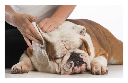 Cleaning your dog's’ ears is a must especially if they have allergies, swim a lot or has a yucky smell. Clean only what you can see, don’t go digging with an earbud. There are some products on the market that will make it easier on you, like Virbac Epi-otic, Physiological Ear Cleaner, Otoclean or Kyron Clean ear. Squirt the solution into the ear canal, give the back of the ear (close to the head) a little rub to get the solution down into the ear canal, then with a cotton ball clean the dirt from the outer ear. Always contact your vet if you see any redness or if there is a peculiar smell.
