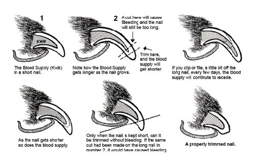 Play with your dog’s paws often and introduce the clippers frequently, do not cut yet. Let him get used to you handling his paws and seeing and sniffing the clipper. Use lots of praise and his favourite treat. Make sure your clipper is a decent one.